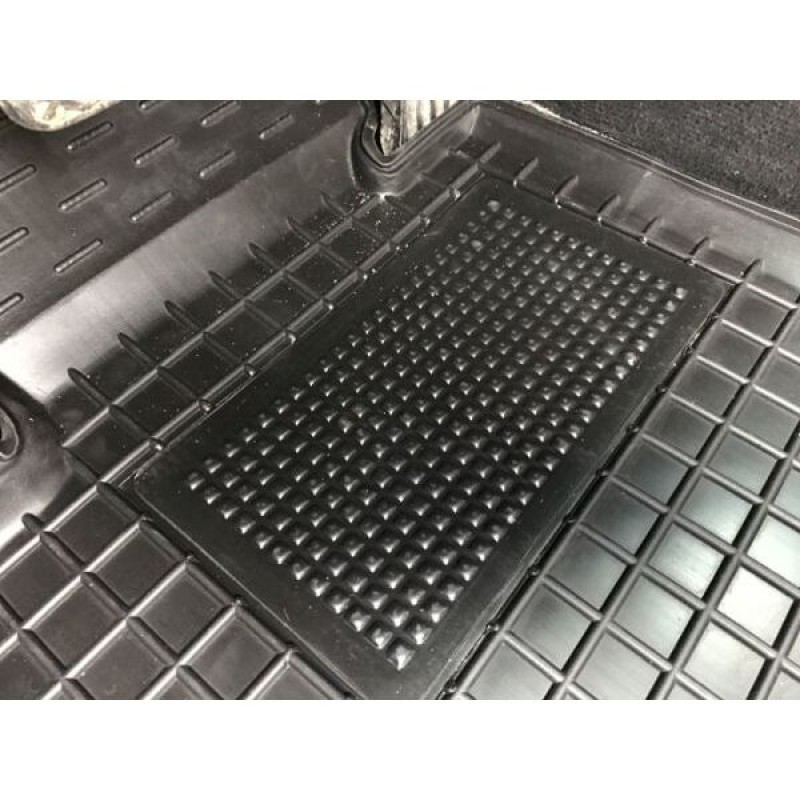 Килимки виготовлені чітко під розмір салону автомобіля, закривають усі необхідні частини підлоги запобігає попаданню бруду, пилу, рідин під килимки. Додатковою перевагою є підп'ятник, яким обладнаний килимок водія, це забезпечує збільшення зносостійкості в максимально навантаженій області килимка, що позитивно впливає на довговічність килимків. Також килимки обладнані спеціальними кліпсами, які фіксують килимки в салоні автомобіля, запобігаючи ковзанню. Додатково передбачено перемичку для заднього ряду пасажирів, щоб максимально утримувати підлогу вашого салону в чистоті.